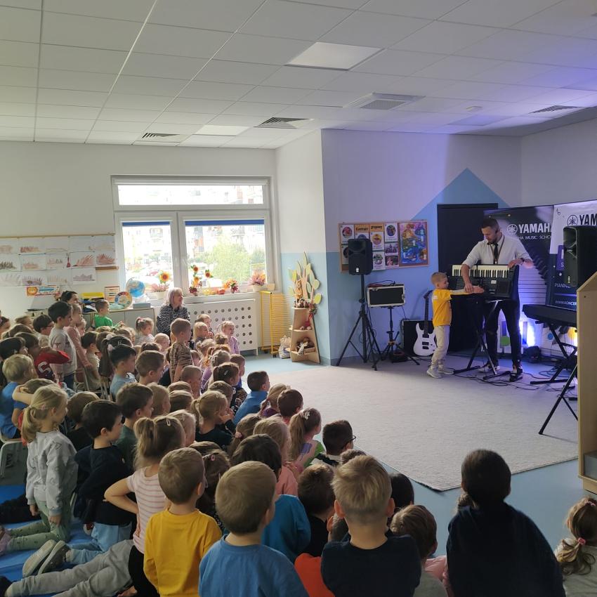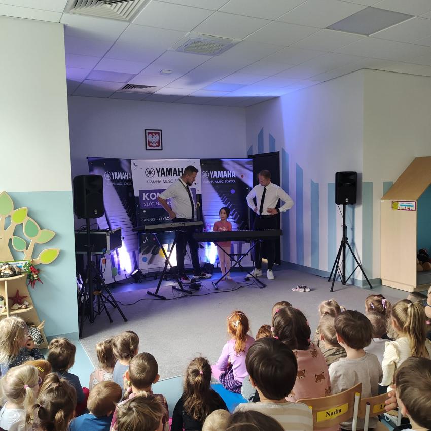 Jak zawsze Zespół Yamaha grał energetycznie i przekazywał wiedzę na temat instrumentów. Tym razem były to instrumenty klawiszowe. Dzieci zawsze świetnie się bawią i uczą.