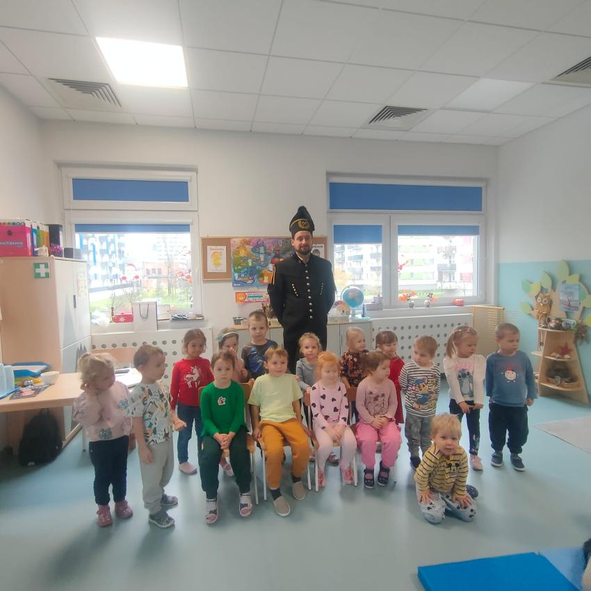Podczas spotkania z górnikiem dzieci poznały specyfikę pracy górnika oraz zobaczyły górniczy strój galowy. Podczas spotkania górnik opowiedział przedszkolakom na czym polega jego praca. Dzieci miały również okazję do obserwacji kryształów soli oraz posłuchania legendy o Św. Kindze.