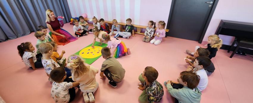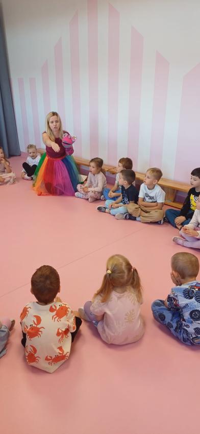 Pierwszego dnia dzieci brały udział w zabawach zorganizowanych na sali gimnastycznej. Poznały Pacynkę Malinkę, z którą wspólnie śpiewały piosenki, rozszyfrowywały owocowe zagadki oraz brały udział w zabawach animacyjnych.